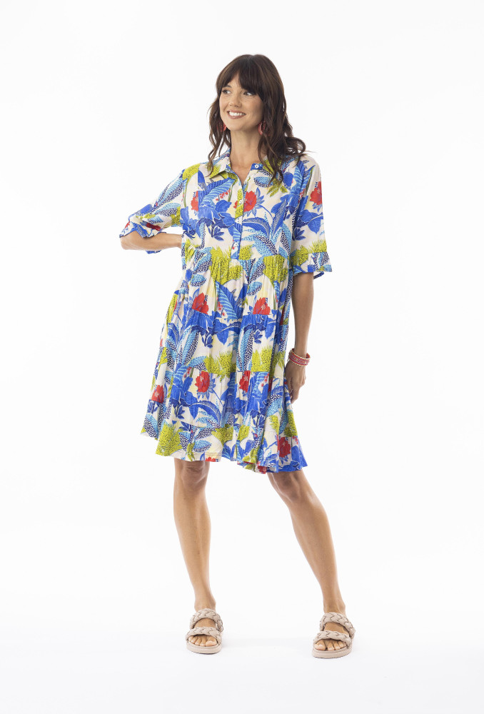 Luna Dress Layers Collar Print