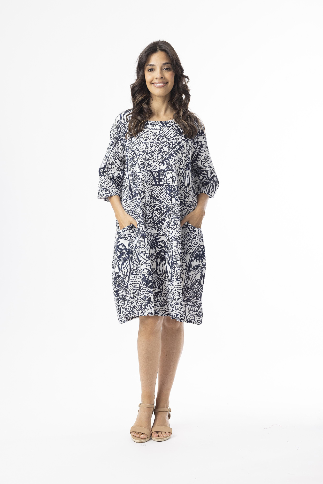 Aksharay Navy Dress Pinch Pleat Frill Sleeve Navy