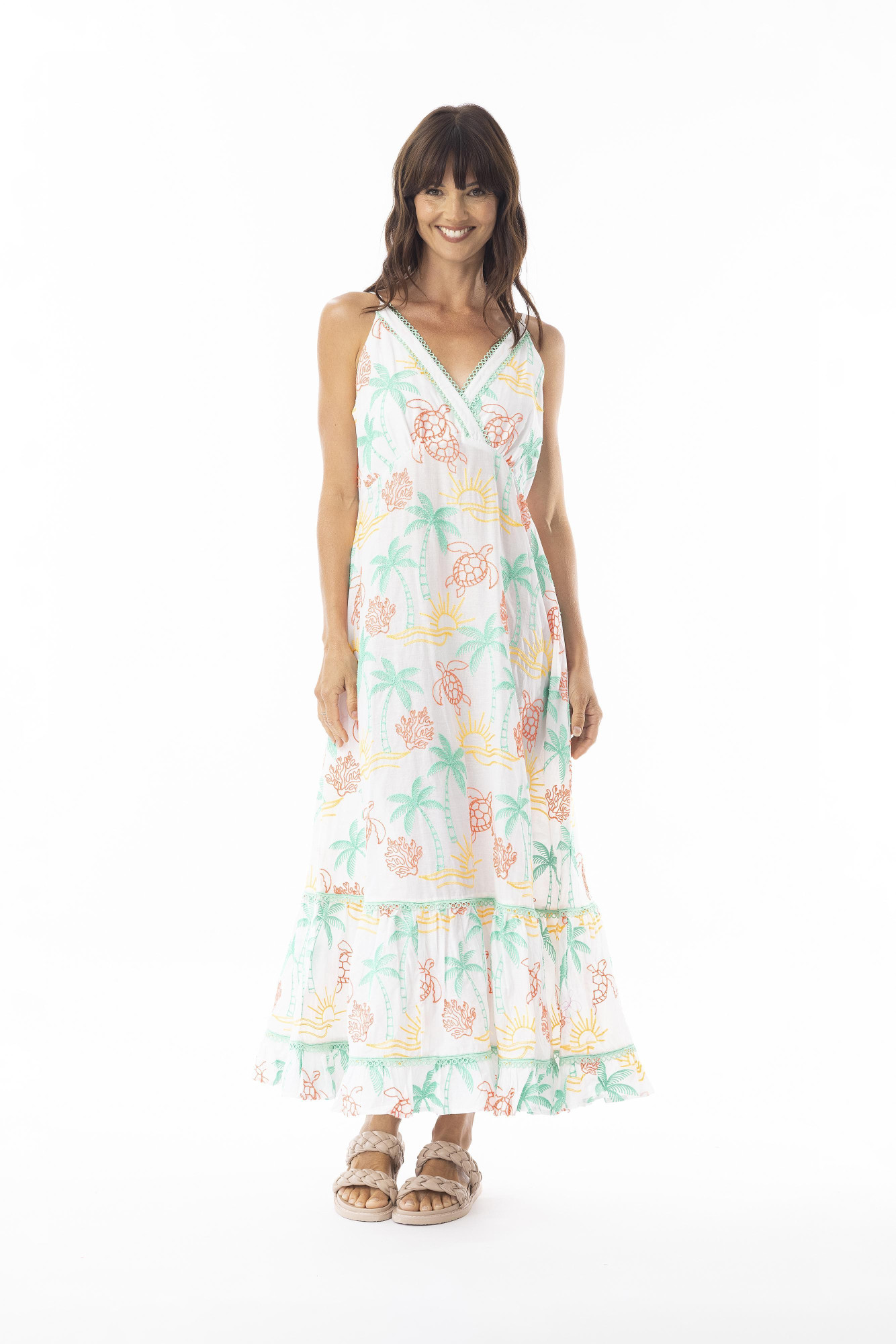 Broderie Essentials Dress Maxi V TURQ