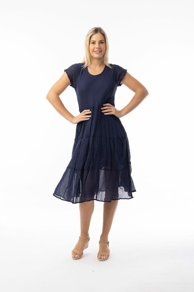 Cotton Gauze Essentials Dress Bias Pockets Navy
