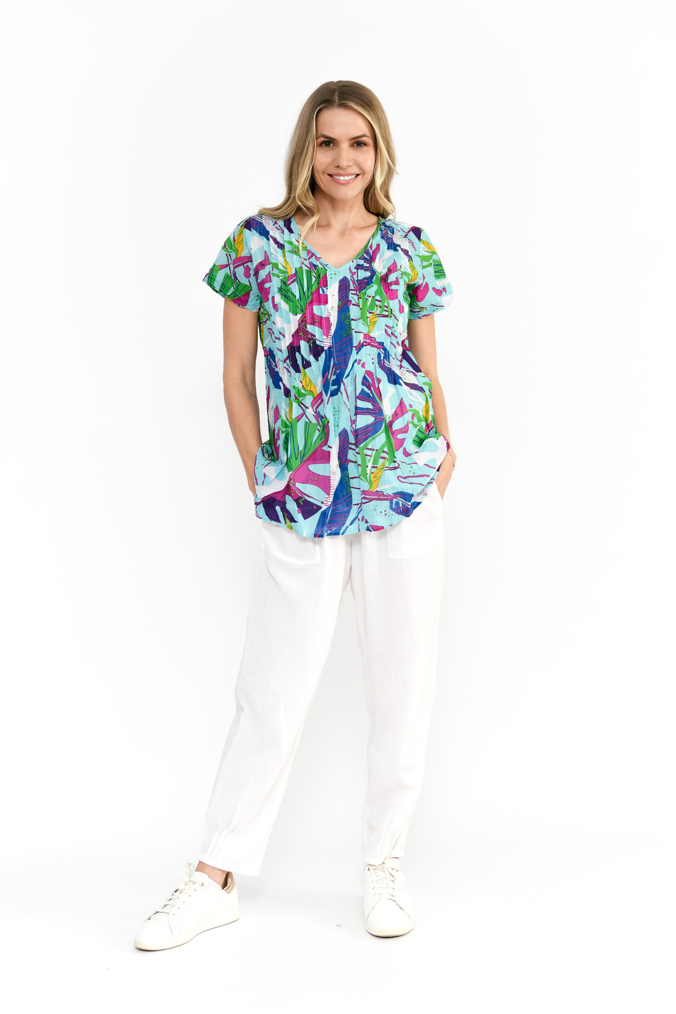 Kayla Cotton Blouse Short Sleeve Painted Tropical 1