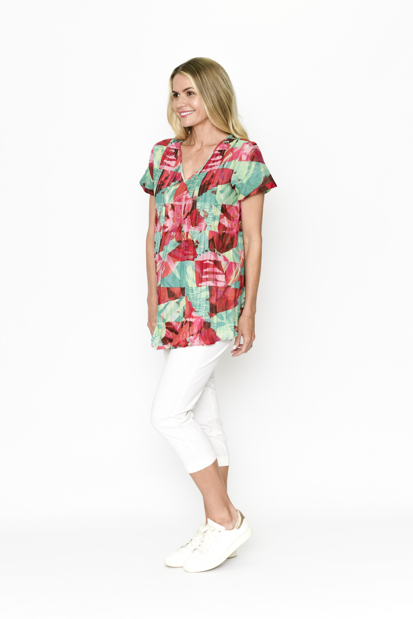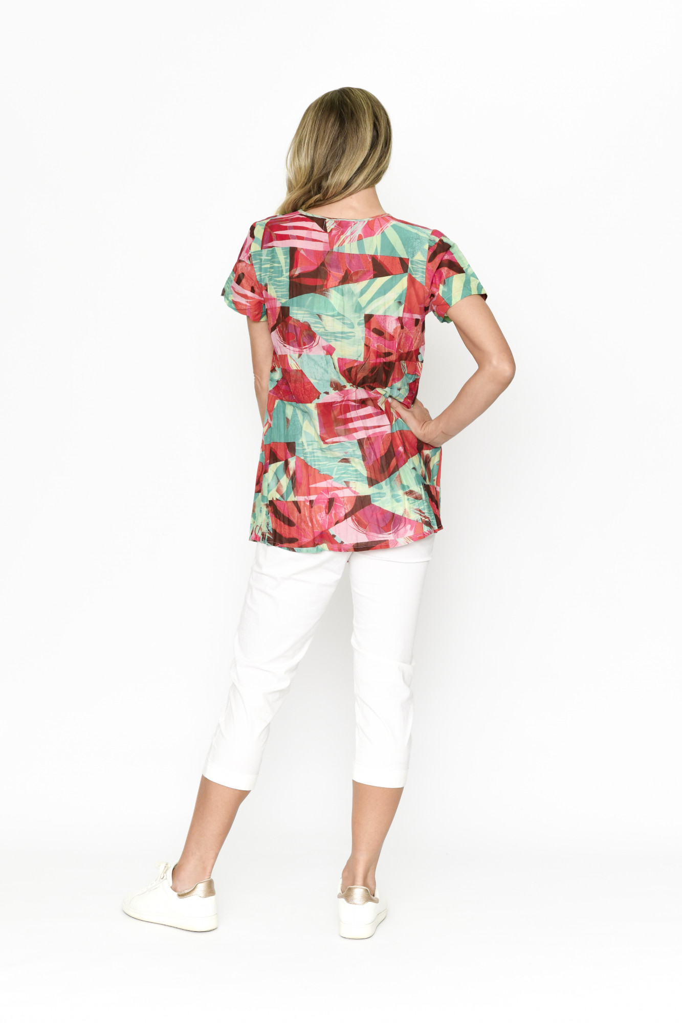 Kayla Cotton Blouse Short Sleeve Abstract Tropical 1