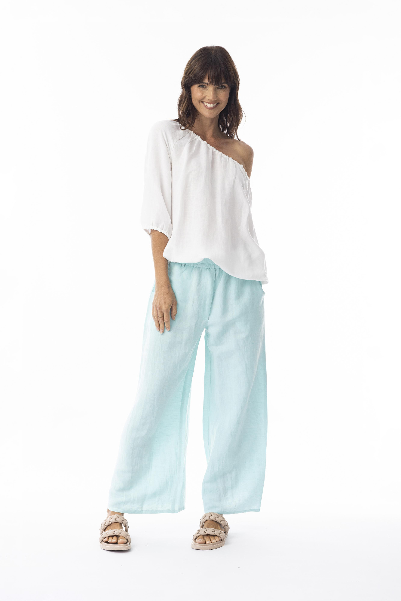 Linen Solid Pant Widfe Leg Island Sky