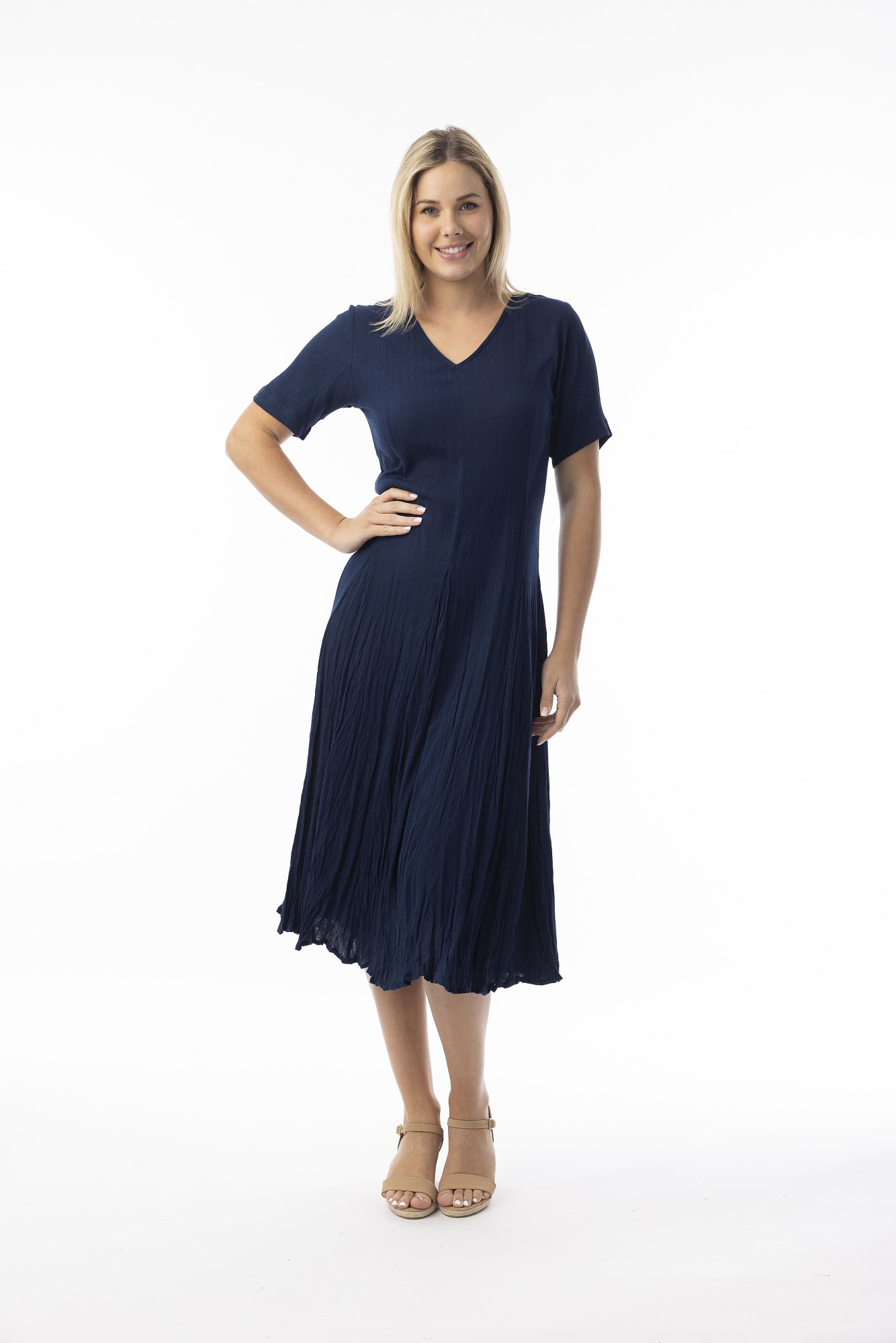 Rayon Essentials Dress Godet Short Sleeves Navy