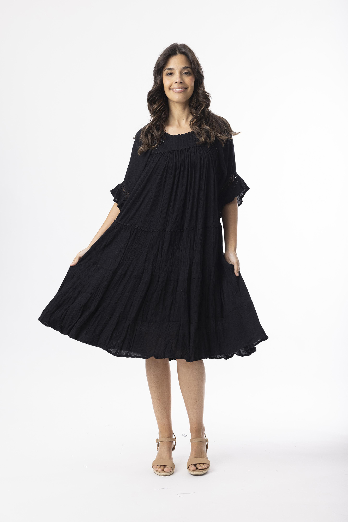 Rayon Essentials Dress Godet Short Sleeves Navy